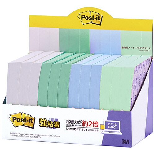 3M ポスト・イット 強粘着ノート マルチカラー2 75×75mm 4色 6541SS-MC-2 1パック(12冊)