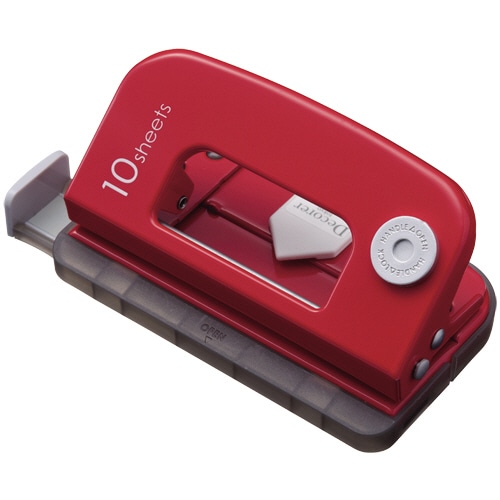 | 商品仕様 | ●色/レッド ●穴あけ枚数/10枚 ●穴数/2穴 ●穴間隔/80mm ●穴径/5.5mm ●穴奥行/11mm ●ゲージ対応サイズ/A3~B6短辺、A4~B5長辺、A4長辺4穴 ●寸法/W118×D62×H51(ロック時30)mm ●材質/ABS、PP、SPCC ●重量/155g ●その他仕様/●ハンドルロック付 ●ゲージ付 |