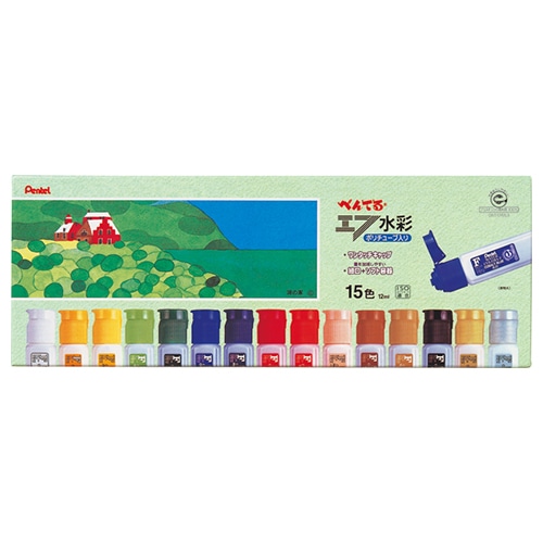 ぺんてる エフ水彩 15色(金・銀入) ポリチューブ入 WFC1-15 1セット