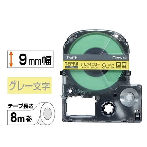 キングジム テプラ PRO テープカートリッジ ソフト 9mm レモンイエロー/グレー文字 SW9YH 1個