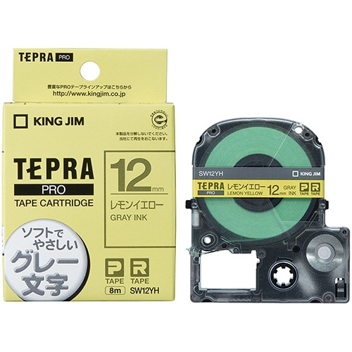 キングジム テプラ PRO テープカートリッジ ソフト 12mm レモンイエロー/グレー文字 SW12YH 1個