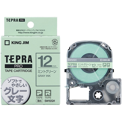 キングジム テプラ PRO テープカートリッジ ソフト 12mm ミントグリーン/グレー文字 SW12GH 1個