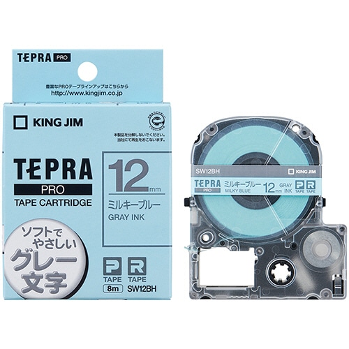 キングジム テプラ PRO テープカートリッジ ソフト 12mm ミルキーブルー/グレー文字 SW12BH 1個
