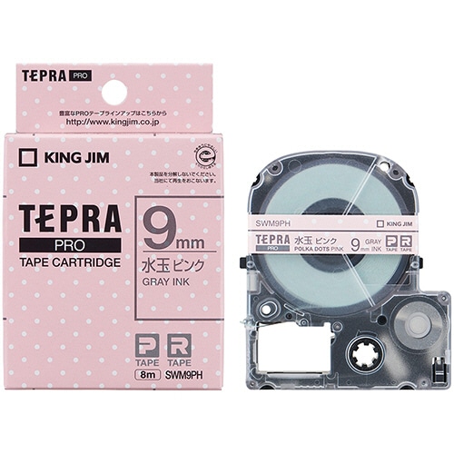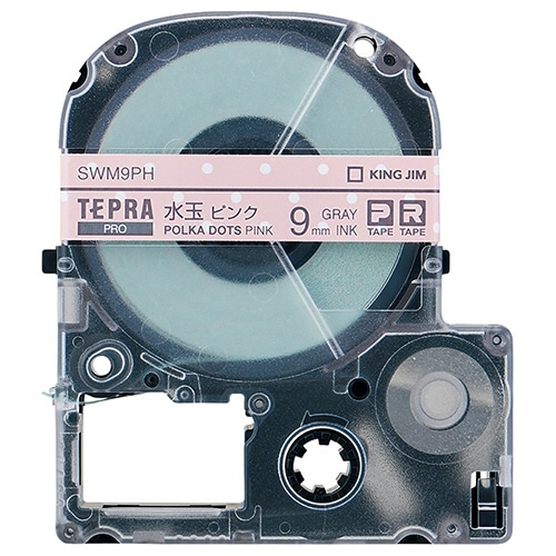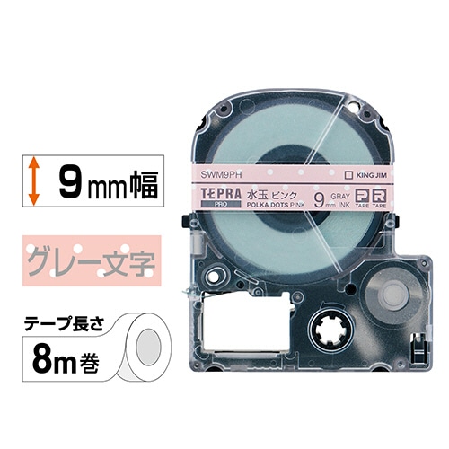 キングジム テプラ PRO テープカートリッジ 模様ラベル 9mm 水玉ピンク/グレー文字 SWM9PH 1個