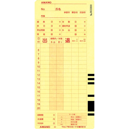 アマノ TimeP@CKカード 6欄印字B(20日締め/5日締め) 1パック(100枚)