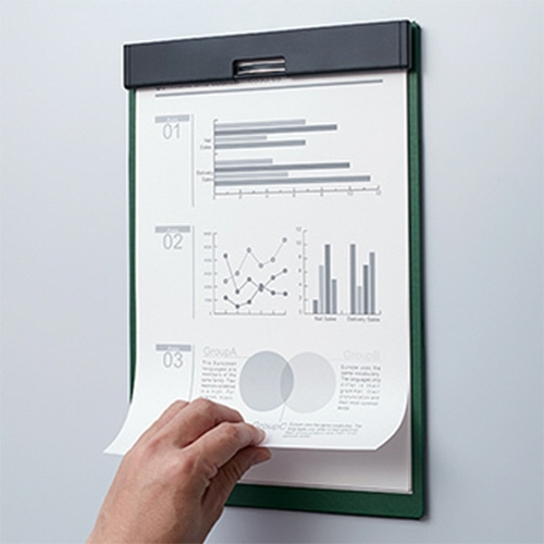 マグネットの力で紙をめくったまま固定できるクリップボード