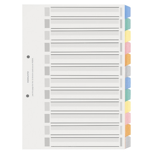 コクヨ カラー仕切カード(PP・ファイル用・12山見出し) A4タテ 2穴 6色+扉紙 シキ-P80 1組