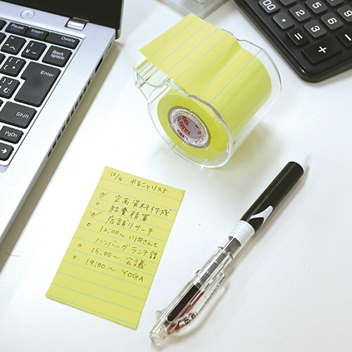 ヤマト メモック ロールテープ(ノート) 蛍光紙 罫線入 つめかえ用 50mm幅 レモン NRK-50H-LK 1巻