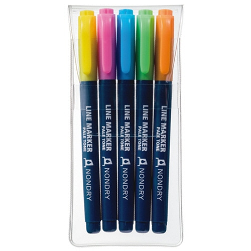 ●淡い色味で目でチカチカしないラインマーカーノンドライ5色セットです。