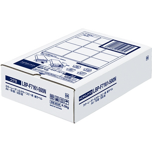 コクヨ カラーレーザー&カラーコピー用 紙ラベル A4 18面 46.6×63.5mm LBP-F7161-500N 1箱(500シート)