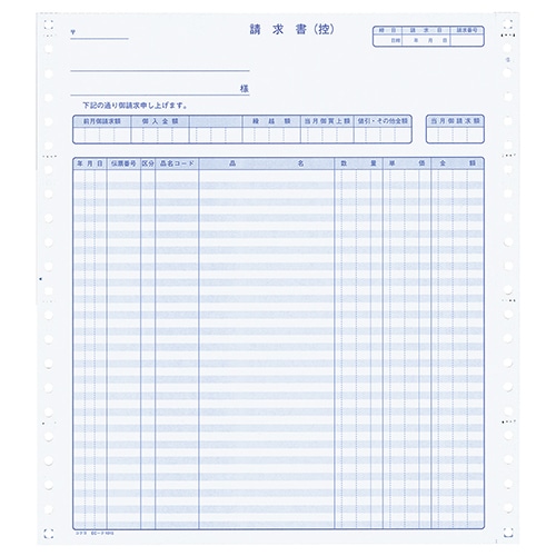 連続伝票用紙の、税額欄のないタイプの請求書。