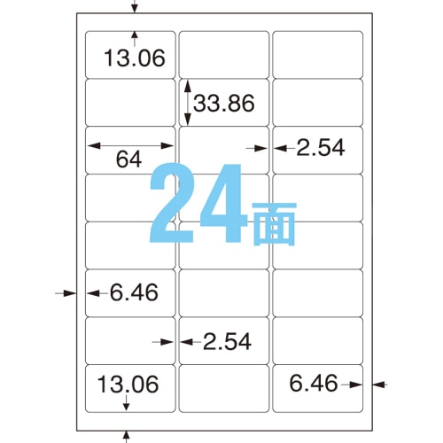 | 商品仕様 | ●サイズ/A4 ●シートサイズ/210×297mm ●ラベルサイズ/33.86×64mm ●面付け/24面 ●カット内容/3列×8段 ●紙質/半光沢フィルム ●坪量/202g/m2 ●ラベルの厚み/0.07mm ●総厚み/0.22mm ●紙色/白 ●備考/※手差し給紙でのご利用をお勧めいたします。 ※お使いの機種によっては適合しない物もあります。 ※お使いの機種によっては対応しない場合がございます。 |