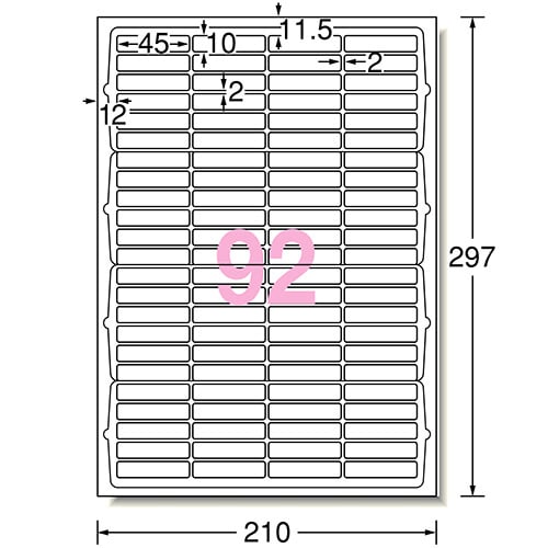 エーワン ラベルシール[レーザープリンタ] マット紙・ホワイト A4 92面 45×10mm 四辺余白付 角丸 66292 1冊(100シート)