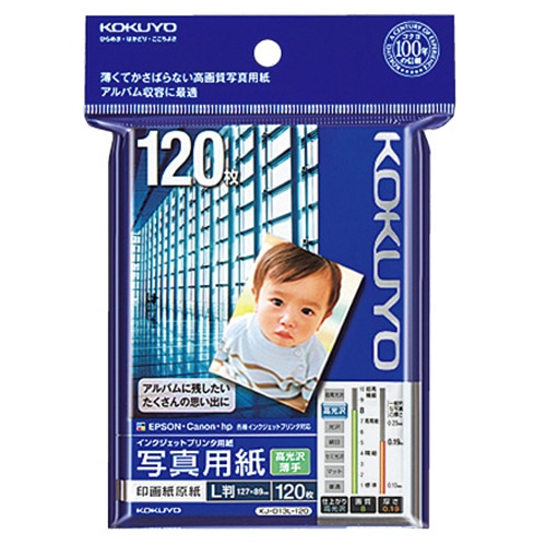 インクジェットプリンタ用紙<写真用紙 印画紙原紙>(高光沢・薄手) L判 120枚
