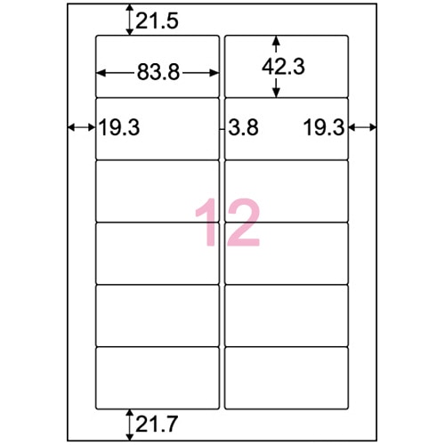 商品仕様 | ●サイズ/A4 ●シートサイズ/210×297mm ●ラベルサイズ/42.3×83.8mm ●面付け/12面 ●紙質/上質紙 ●坪量/144g/m2 ●ラベルの厚み/0.1mm ●総厚み/0.15mm ●白色度/約120% ●紙色/白 ●備考/※ラベルを印刷する際は「ラベル」あるいは「厚紙」設定でお使いください。給紙方法や設定等はそれぞれのプリンタマニュアルでご確認ください。 ※インクジェットプリンタで印刷の際は、普通紙設定で印刷してください。本製品には耐水性はありません。 ※剥離紙(台紙)は樹脂ラミネート加工がされていないので、そのままリサイクルが加工です。 ※メーカーホームページより印刷用ソフト「ヒサゴ工房」を無料でダウンロードできます。 ※厚紙モード、手差し給紙でお使いください。また、お使いの機種によっては対応しない場合がございます。 ※インクジェットプリンタの場合、にじみが生じる場合がございます。 |