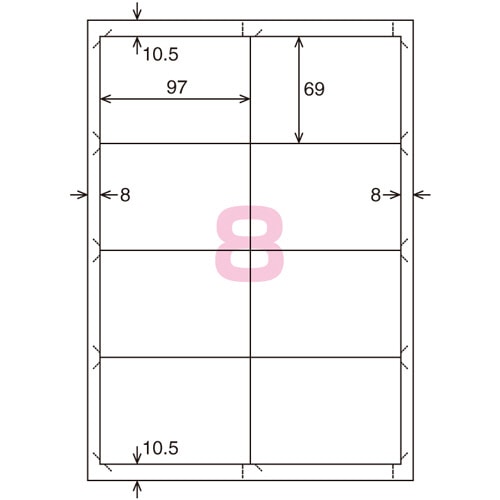 商品仕様 | ●サイズ/A4 ●シートサイズ/210×297mm ●ラベルサイズ/69×97mm ●面付け/8面 ●カット内容/四辺余白 ●紙質/上質紙 ●総厚み/約0.16mm ●白色度/約94% ●再剥離/○ ●備考/※カラーコピー、モノクロコピー、カラーレーザー、モノクロレーザーは厚紙モード・手差し給紙でお使いください。お使いの機種によっては対応しない場合がございます。 |