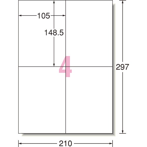 商品仕様 | ●サイズ/A4 ●シートサイズ/210×297mm ●ラベルサイズ/105×148.5mm ●面付け/4面 ●紙質/上質紙 ●総厚み/0.2mm ●白色度/98% ●下地が隠せる/○ ●備考/※厚紙モード・手差し給紙でお使いください。 ※お使いの機種によっては対応しない場合がございます。 |