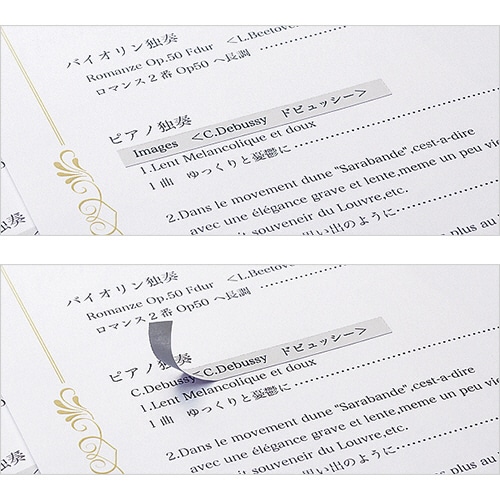●裏側にグレーののりを使用しているため、下地の色柄や文字をしっかり隠すことができます。印刷物の訂正や下地をかくしたい場合に好適です。