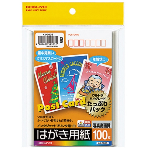 コクヨ インクジェットプリンタ用はがき用紙 両面マット紙 KJ-2635N 1冊(100枚)