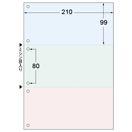 ●3面、6穴のマルチプリンタ帳票。カラーは浅葱・緑・橙です。