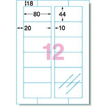 商品仕様 | ●タイプ/透明保護フィルム ●サイズ/A4変型 ●ラベルサイズ/タテ44×ヨコ80mm ●ラベルの厚さ/0.05mm ●材質/ポリプロピレン ●その他仕様/●面付け:12面(2列×6段) ●シートサイズ:210×300mm ●総厚み:0.14mm ●坪量:130g/m2 |