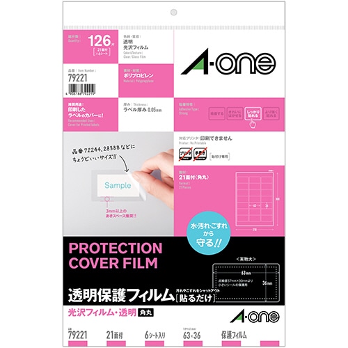エーワン 透明保護フィルム 光沢フィルム・透明 A4変型 21面 63×36mm 角丸 79221 1冊(6シート)