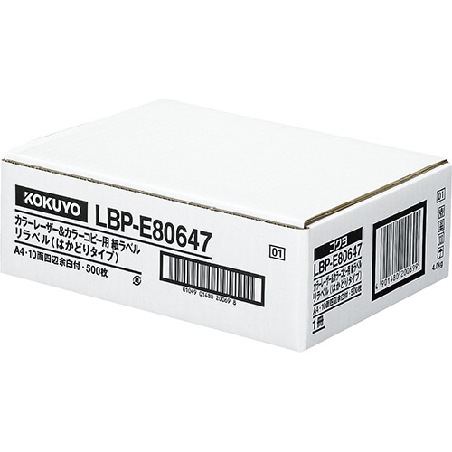 コクヨ カラーレーザー&カラーコピー用 紙ラベル(リラベル)(はかどりタイプ) A4 10面 50.8×86.4mm 四辺余白付 LBP-E80647 1冊(5