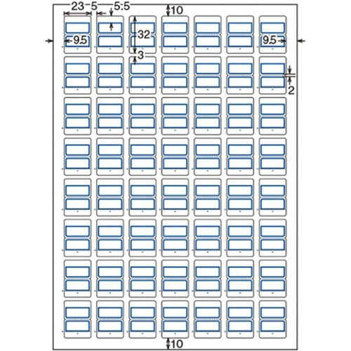 商品仕様 | ●サイズ/A4 ●シートサイズ/210×297mm ●ラベルサイズ/23×32mm ●面付け/56面 ●総厚み/0.15mm ●紙色/枠色:無地 ●強粘着/○ ●その他仕様/●強粘着タイプ ●備考/※用紙厚さ132g/m2以上に対応する機種でお使いください。 ※用紙厚132g/平米以上で対応する機種でお使いください。 ※無地タイプのため、枠線の印刷はありません。 |