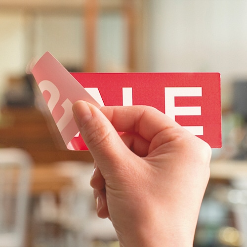 ●半光沢ホワイトフィルムの屋外用ラベル、キレイにはがせるタイプです。