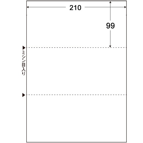 商品仕様 | ●用紙タイプ/カット紙 ●サイズ/A4タテ ●寸法/297×210mm ●ミシン目切り離し後サイズ/99×210mm ●面付/3面 ●色/白 ●とじ穴/なし ●坪量/64g/m2 ●厚み/約0.08mm ●白色度/約83% ●備考/※用紙の裏面に品番等が印刷されております。 ※2020年10月頃より順次、原紙が海外紙から品質の安定した国産紙に切り替わります。原紙の変更に伴い白色度が約120%→約83%に変更になります。落ち着いた色合い、また手触り感などの風合いも若干変わります。 |