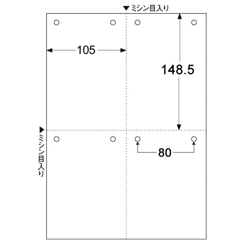 | 商品仕様 | ●用紙タイプ/カット紙 ●サイズ/A4タテ ●寸法/297×210mm ●ミシン目切り離し後サイズ/148.5×105mm ●面付/4面 ●色/白 ●とじ穴/8穴 ●とじ穴間隔/80mm ●坪量/64g/m2 ●厚み/約0.08mm ●白色度/約83% ●備考/※用紙の裏面に品番等が印刷されております。 ※2020年10月頃より順次、原紙が海外紙から品質の安定した国産紙に切り替わります。原紙の変更に伴い白色度が約120%→約83%に変更になります。落ち着いた色合い、また手触り感などの風合いも若干変わります。 |