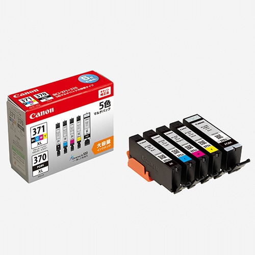 | 商品仕様 | ●種類/純正インクカートリッジ(大容量) ●サイズ/大容量 ●色/染料ブラック、顔料ブラック、シアン、マゼンタ、イエロー ●その他仕様/●パック内容:BCI-371XL(BK/C/M/Y)+BCI-370XL ●カラー/マルチカラー/多色 |