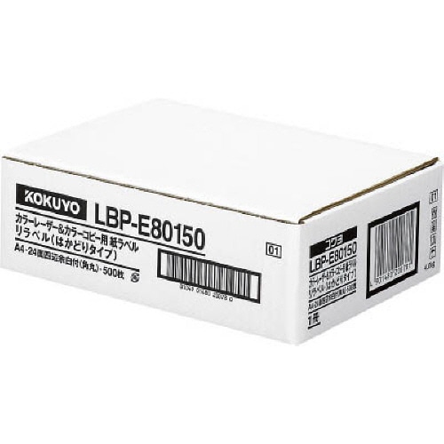 コクヨ カラーレーザー&カラーコピー用 紙ラベル(リラベル)(はかどりタイプ) A4 24面 21.2×83.8mm 四辺余白付(角丸) LBP-E80150