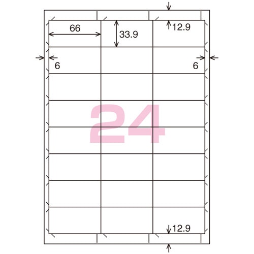 商品仕様 | ●サイズ/A4 ●シートサイズ/210×297mm ●ラベルサイズ/33.9×66mm ●面付け/24面 ●カット内容/四辺余白 ●総厚み/約0.16mm ●白色度/約94% ●再剥離/○ ●備考/※カラーコピー、モノクロコピー、カラーレーザー、モノクロレーザーは厚紙モード・手差し給紙でお使いください。お使いの機種によっては対応しない場合がございます。 |