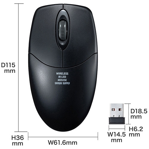 | 商品仕様 | ●色/ブラック ●読取方式/光学センサー方式(IR LED) ●接続方式/2.4GHz RF電波方式 ●ボタン数/3ボタン ●ボタン構成/2ボタン、ホイール(スクロール)ボタン ●分解能/1600カウント ●電源/単三乾電池 ●使用時間/連続作動時間:約424時間、連続待機時間:約20250時間、使用可能日数:約735日 ●対応OS/Windows10/8.1/8、macOS 10.12~10.14、Mac OS X 10.3~10.11 ●寸法/W約61.6×D115×H36mm ●質量/約65g ●その他仕様/●通信範囲:木製机(非磁性体)/半径約10m、スチール机(磁性体)/半径約2m ●レシーバー寸法:約W14.5×D18.5×H6.2mm ●レシーバー重量:約2g ●コネクタ形状:USBコネクタ(Aタイプ) ●インターフェース:USB HID仕様バージョン1.0準拠 ●防塵・防水:IP68 ●保証期間:6ヶ月 ●付属品/レシーバー×1、テスト用単三幹電池×1本、取扱説明書 ●備考/※寸法はマウス、重量はマウス本体で電池含まず ※使用時間は一日8時間のパソコン作業で、マウス操作を5%行った場合。 ※最新の対応OSにつきましてはメーカーホームページをご確認ください。 |