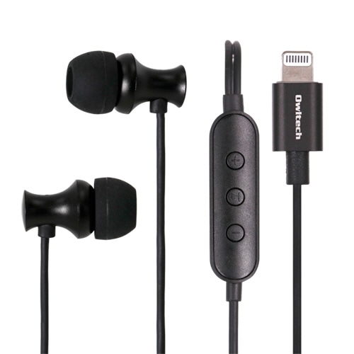 オウルテック Lightningコネクタイヤホン マイクボリュームコントロール付 ブラック 90cm OWL-EPLT01-BK 1個