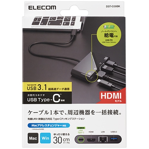 エレコム USB Type-C接続ドッキングステーション(HDMI) ブラック DST-C09BK 1個