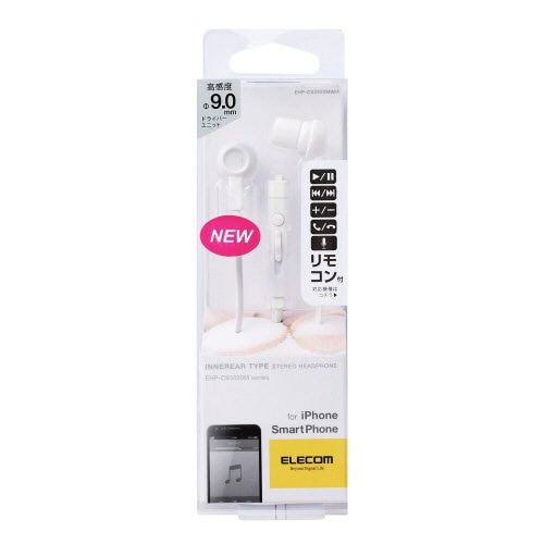 エレコム スマートフォン用ステレオヘッドホンマイク(耳栓タイプ) ホワイト RoHS指令準拠(10物質) EHP-CS3520MWH 1個