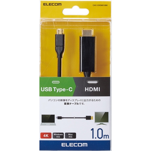 エレコム USB Type-C用HDMI変換ケーブル ブラック 1m RoHS指令準拠(10物質) CAC-CHDMI10BK 1本