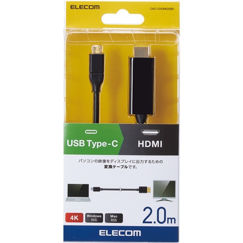 エレコム USB Type-C用HDMI変換ケーブル ブラック 2m RoHS指令準拠(10物質) CAC-CHDMI20BK 1本