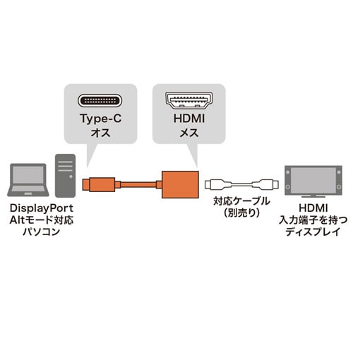 DisplayPort ALT モード対応のUSB Type-C(ALTモード)ポートからHDMI入力のテレビやディスプレイに出力するための変換アダプタ。HDR対応。