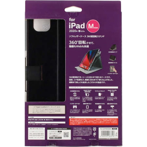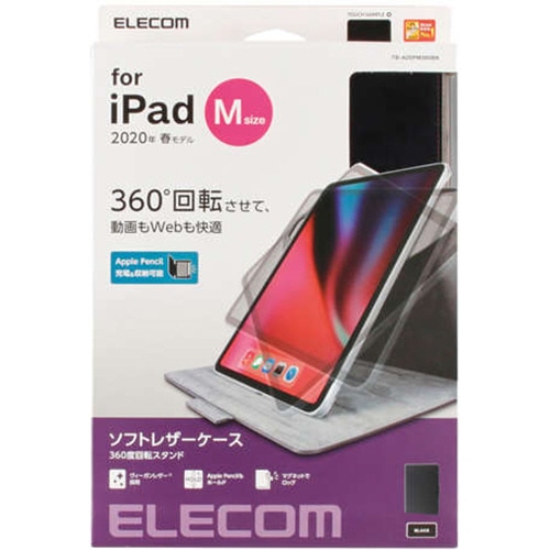 エレコム iPad Pro 11型用フラップカバー/ヴィーガンレザー/360度回転4アングル ブラック TB-A20PM360BK 1個