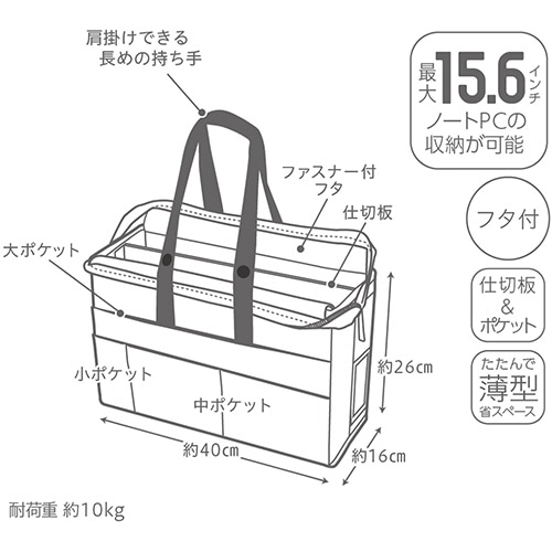 ●最大15.6型までのノートPCの収納が可能。仕切り板つきなので、パソコンと書類をわけて収納できます。