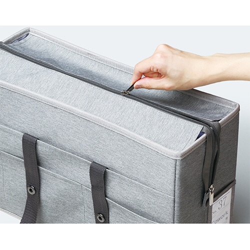 ●外出時もファスナーを閉めると中身を隠せて安心のグレーのキャビネットバッグです。