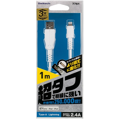 オウルテック 屈曲試験25万回合格 超タフストロング Lightningケーブル ホワイト 1m OWL-CBALA10-WH 1本