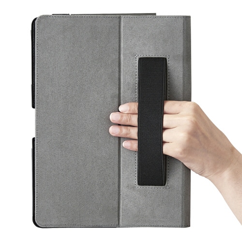 ●動画視聴やタイピングなどシーンに合わせて2アングルにできるスタンドとペンホルダを装備した軽量設計のSurface Go 2用抗菌ソフトレザーカバーです。