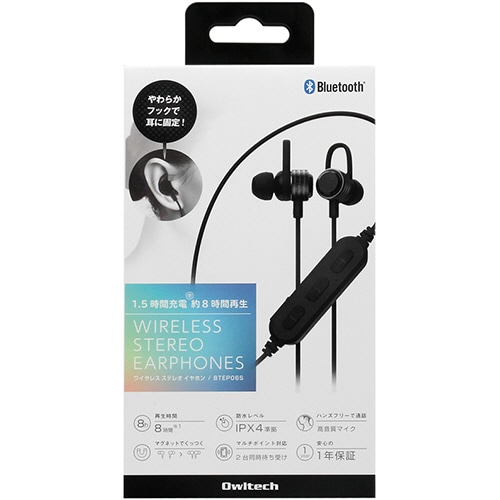 オウルテック Bluetooth5 ワイヤレス ステレオイヤホン マグネット付 ブラック OWL-BTEP06S-BK 1個
