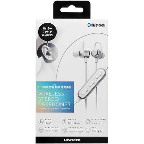 ●マグネット付Bluetooth5 ワイヤレスステレオイヤホン「OWL-BTEP06S」シリーズ、カラーはホワイトです。