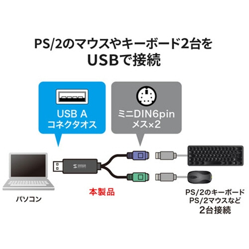サンワサプライ USB-PS/2変換コンバータ USB(A)オス-ミニDIN6pinメス×2 USB-CVPS6 1本
