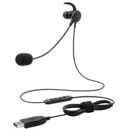 エレコム 片耳耳栓タイプUSBヘッドセット 約1.8m ブラック HS-EP16UBK 1個
